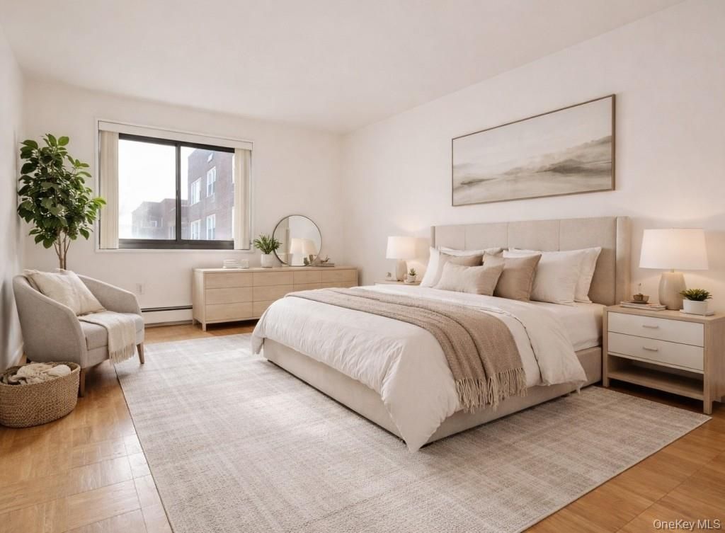 If there were ever a home that lives like a three-bedroom, this is it! Discover your own peaceful sanctuary just moments from the vibrant heart of Hartsdale in this sprawling, sun-drenched 2-bedroom, 2-bath co-op with the rare luxury of indoor deeded parking. From the moment you enter, you're greeted by an expansive, light-filled living and dining area designed for both effortless entertaining and everyday comfort. The stunning, fully renovated walk-thru kitchen is a true showpiece, featuring gleaming quartz countertops, stainless steel appliances, and custom cabinetry that stretches to the ceiling-blending style with exceptional functionality. What truly sets this home apart is the incredible flexibility of space. Off the kitchen, a formal dining room on one side and a generous bonus area on the other offer endless possibilities-imagine a chic home office, cozy den, guest retreat, or inspiring creative studio. The thoughtfully designed split-bedroom layout ensures maximum privacy. Tucked away, the oversized corner primary bedroom and bath feel like a private escape, easily accommodating a king-sized bedroom set. A second spacious bedroom sits on the opposite wing, adjacent to a beautifully updated hall bath. Abundant storage is yours with eight large closets, while rich parquet floors add warmth and timeless appeal throughout. And the convenience of your own assigned indoor deeded parking space is simply unmatched. All of this in the heart of Hartsdale's charming village-enjoy boutique shopping, popular dining, a lively farmers market, and an easy Metro-North commute to Grand Central in under 40 minutes. This is more than a home-it's a lifestyle. The building offers 2 common laundry rooms, plus extra storage for an additional fee. Estimated monthly maintenance $1266, additional fees $243/month - No pets. Requirements 650 credit FICO score, 10% down, DTI under 28% (Bonus and overtime not included). 6 months of liquid assets of Maintenance and mortgage for last 6 months. The unit comes with 1 assigned indoor parking space # 113 for $72/mo.; space is deeded so must pay for the spot. Maintenance prior to STAR credit.