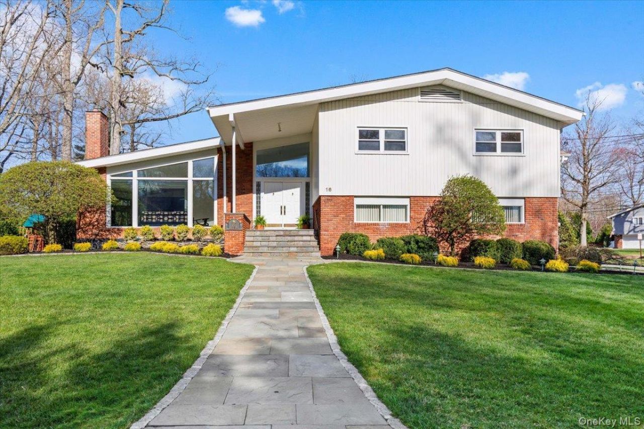 Welcome to 16 Dell Drive, an elegant Mid-Century Modern split-level residence perfectly positioned on a coveted corner lot in Lake Isle Estates. This impeccably maintained home offers five expansive bedrooms and three full baths, blending architectural sophistication with refined comfort. The grand entry sets the tone with soaring ceilings, a custom designer chandelier, and sweeping sightlines that showcase the home's exceptional scale. The main level features an airy living room anchored by a sleek fireplace, a formal dining room illuminated by a handcrafted Italian Murano crystal chandelier, and an impressive family room with a second fireplace, vaulted ceilings, skylights, and custom plantation shutters framing serene views of the park-like grounds. The oversized eat-in kitchen is ideal for both daily living and entertaining, complete with generous prep space and a built-in wine refrigerator. The upper level hosts a luxurious primary suite with dual walk-in closets, a spacious spa-inspired bath, and tranquil vistas of the property. Three additional bedrooms-each generously proportioned-share a beautifully appointed hall bath. The lower level offers exceptional versatility, featuring a large family room with a wood-burning stove, an additional bedroom with a walk-in closet, a full bath, and direct access to the two-car garage-an ideal setup for guests, extended family, or private living quarters. Additional premium features include a new roof, all-new LED lighting, a new secondary HVAC system, and a partial basement with laundry and ample storage. Residents of Lake Isle Estates enjoy exclusive access to The Shore Club, offering a private pool, kayaking, and non-motorized water sports. Membership eligibility at the renowned Lake Isle Country Club provides further luxury amenities, including golf, tennis, and resort-style swimming. Located within the highly regarded Eastchester Union Free School District-with bus service to all grade levels-and convenient to transportation, shopping, and more, this home presents a rare opportunity in a premier setting.