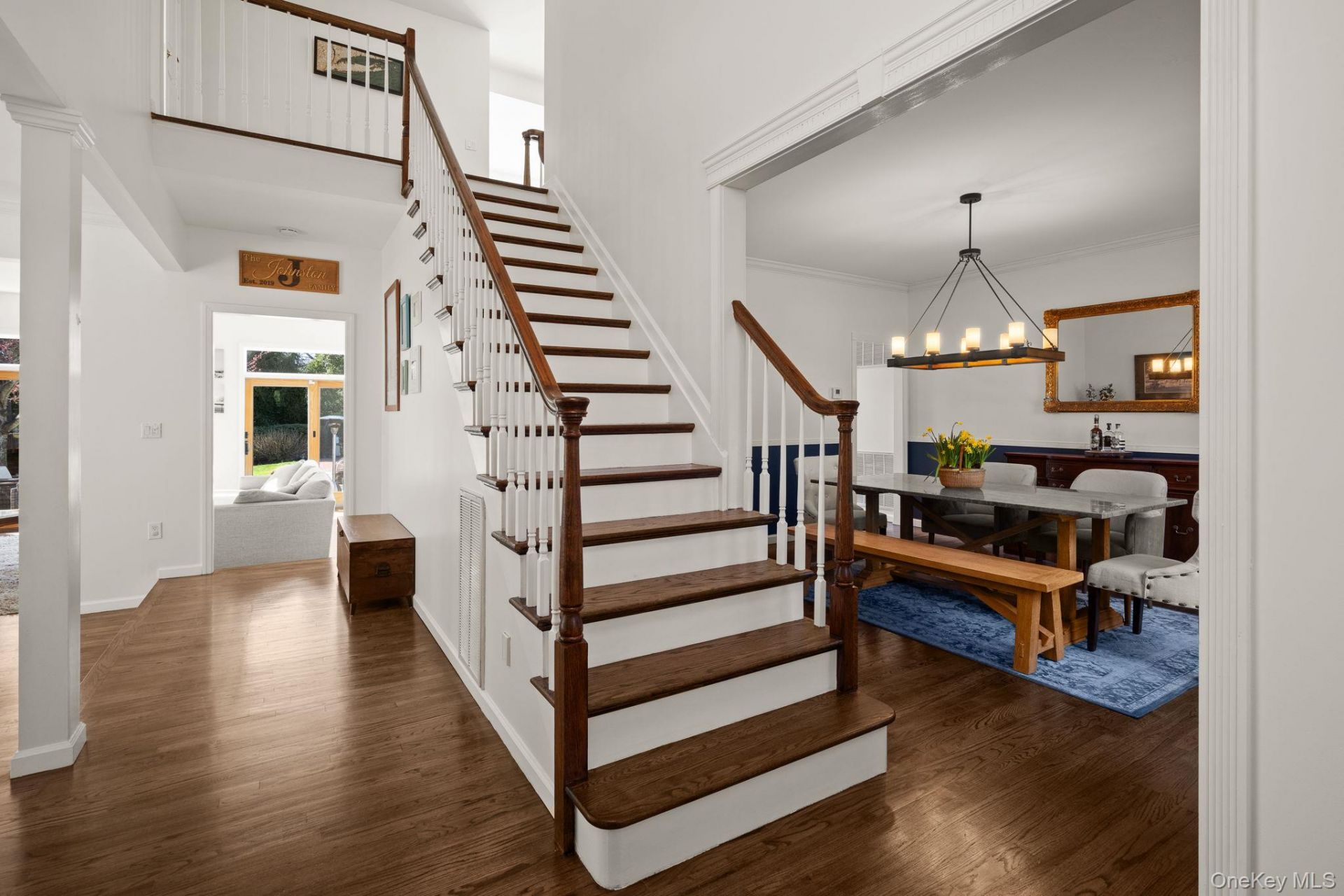 Tucked away in Northport, this impeccably cared-for residence offers an impressive combination of scale, ease, and fabulous enhancements, surrounded by bucolic plantings that provide both beauty and a heightened sense of seclusion. A long, gracious entrance driveway sets the tone, leading to a home for refined living and memorable gatherings.The main level is designed with a natural flow, featuring a generous great room, formal dining area, secluded office, inviting den, powder room, and a functional mudroom with laundry, garage access, and a secondary staircase. The centerpiece is a remarkable, newly renovated eat-in kitchen, appointed with quartz surfaces, bespoke cabinetry, a farmhouse sink, wine refrigerator, and a stylish wet bar-perfectly suited for entertaining. On the upper level, the expansive primary suite offers a tranquil retreat with its own bath, while three additional bedrooms and well-designed baths provide comfort and flexibility for residents and visitors alike. The lower level adds even more versatility with high ceilings, fitness area, recreation space, and plentiful storage.Outdoors, the grounds unfold into a secluded retreat, enhanced by lush, pastoral landscaping. A saltwater pool and fully equipped outdoor kitchen create an ideal setting for warm-weather enjoyment or quiet relaxation.Additional features include a whole-house water filtration system, a full-home generator, in-ground irrigation, and natural gas service connected to the outdoor barbecue, along with storage sheds-providing year-round comfort, convenience, and peace of mind.